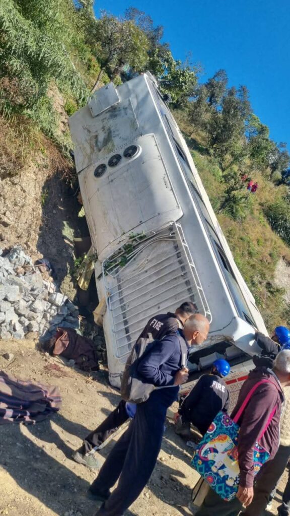 टिहरी: गुजरात से उत्तराखंड दर्शन के लिए आए 28 श्रद्धालुओ की बस नरेंद्रनगर–कुंजापुरी मंदिर मार्ग पर हिंडोलाखाल के पास अचानक अनियंत्रित होकर गहरी खाई में जा गिरी।गहरी खाई में गिरने से बस बुरी तरह क्षतिग्रस्त हो गई और पाँच श्रद्धालुओं की मौके पर ही दर्दनाक मौत हो गई, जबकि कई अन्य श्रद्धालु घायल बताए जा रहे हैं।हादसे की सूचना मिलते ही प्रशासन और पुलिस टीमें तुरंत रेस्क्यू में जुट गईं।यह सभी यात्री कुंजापुरी मंदिर के दर्शनों के लिए जा रहे थे।