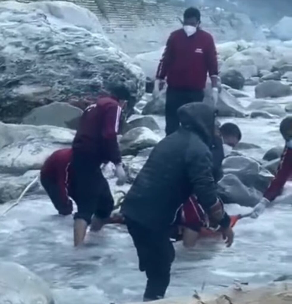 चमोली। बीरही क्षेत्र में अलकनंदा नदी में एक महिला का शव दिखाई दे रहा है। सूचना प्राप्त होते ही चौकी प्रभारी उ0नि0 पूनम खत्री मय पुलिस के साथ तत्काल घटनास्थल पर पहुँची। घटनास्थल की परिस्थितियाँ अत्यंत कठिन होने के कारण डीडीआरएफ एवं एसडीआरएफ टीमों को मौके पर बुलाया गया। तत्पश्चात पुलिस व डीडीआरएफ की टीमों द्वारा संयुक्त प्रयास करते हुए कड़ी मशक्कत के बाद शव को नदी से बाहर निकाला गया।शव की पहचान *संतोषी देवी पत्नी दयाल सिंह नेगी निवासी नौरख (पीपलकोटी), उम्र 47 वर्ष* के रूप में हुई है। पहचान मृतका के परिजनों—भतीजा मनीष नेगी, बेटा साहिल नेगी सहित अन्य परिवारजनों द्वारा की गई। मृतका संतोषी देवी की गुमशुदगी थाना चमोली में मुकदमा *अपराध संख्या 35/25, धारा 140(3) BNS* के अन्तर्गत पंजीकृत थी, जिसकी तलाश पुलिस द्वारा की जा रही थी।मौके पर नियमानुसार पंचायतनामा की कार्रवाई की गई तथा शव को पोस्टमार्टम हेतु जिला चिकित्सालय गोपेश्वर भेजा गया है। मामले में अग्रिम जांच एवं आवश्यक कानूनी कार्रवाई जारी है।